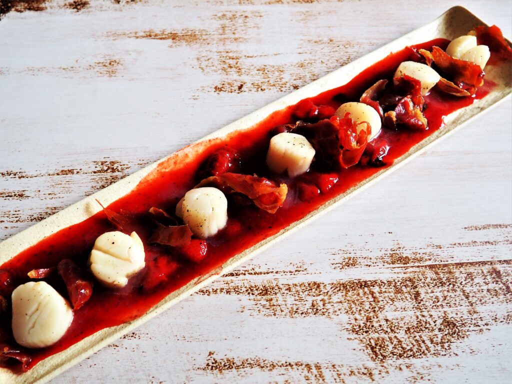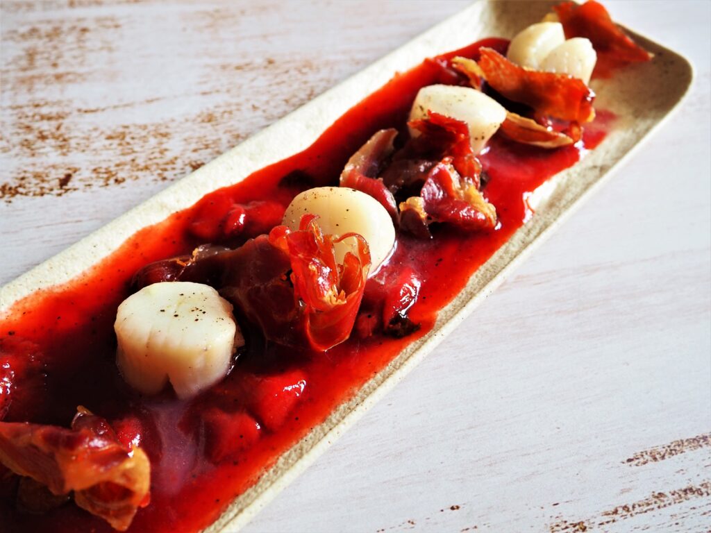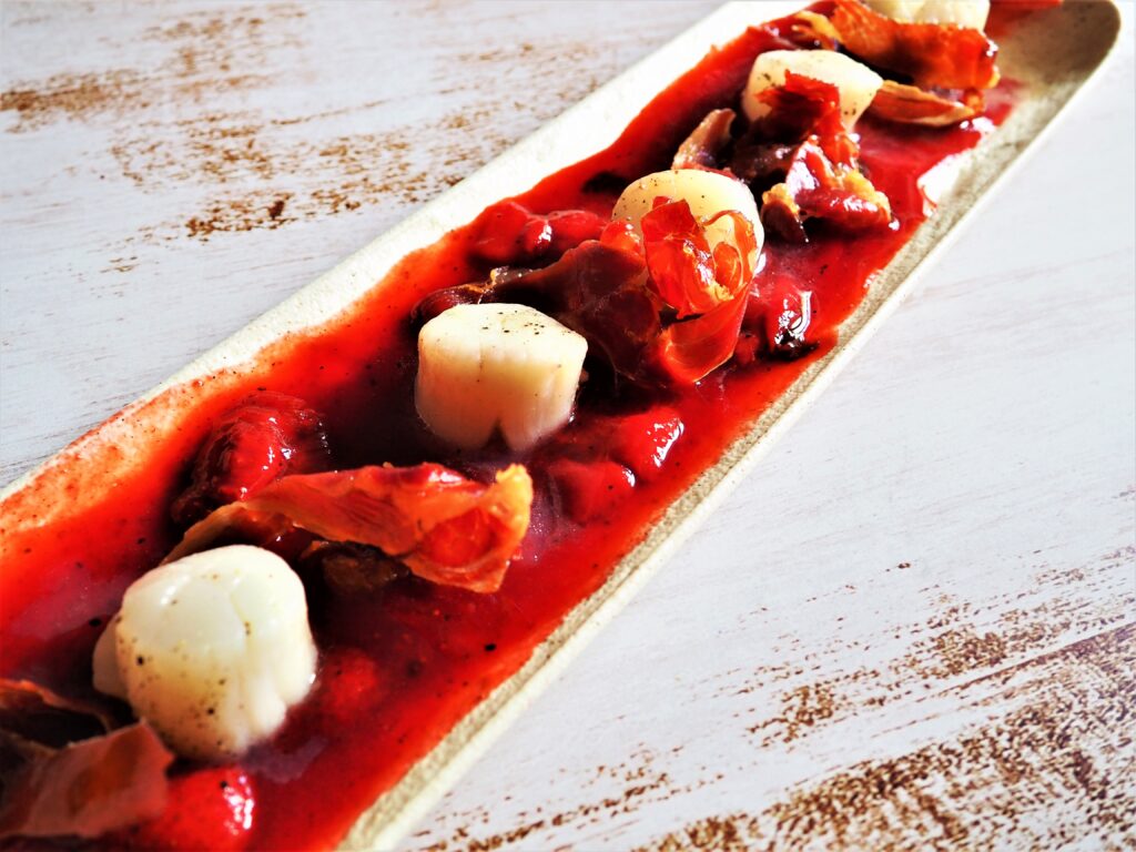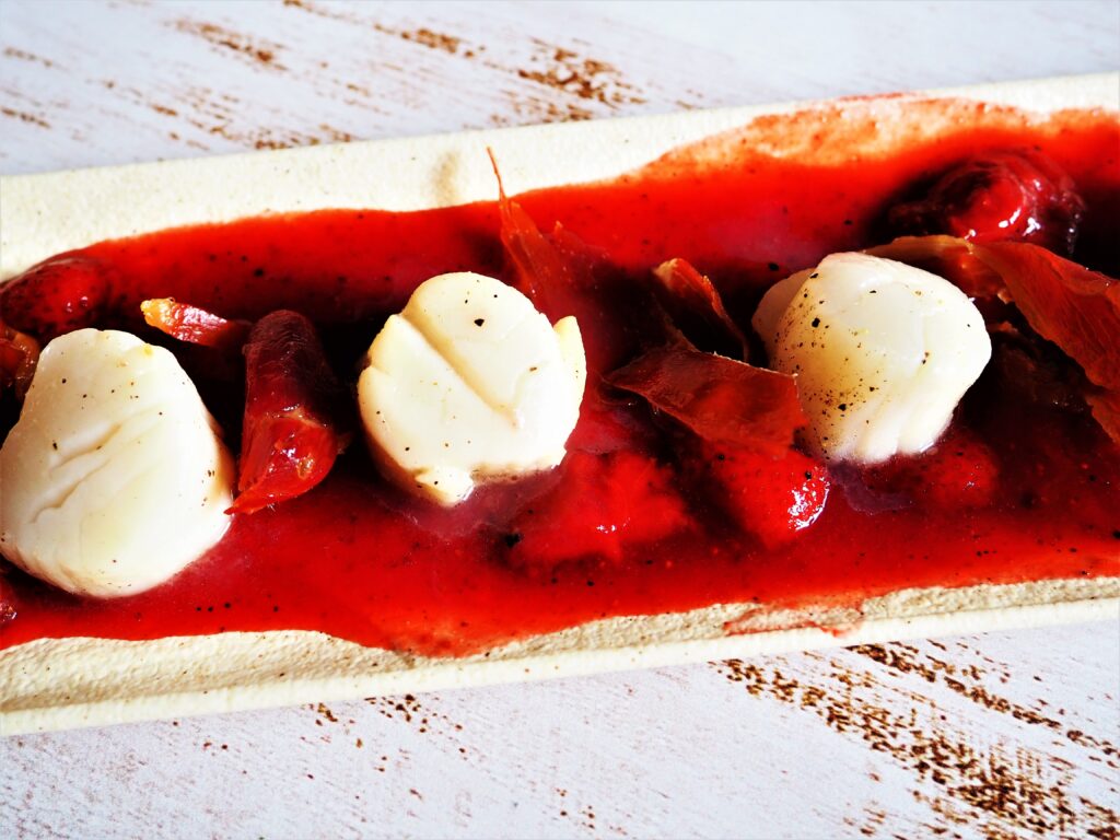 Dzisiaj idę krok dalej i owoce – sezonowe truskawki zestawiam z owocami morza, a konkretnie z przegrzebkami. Znam takich, co na samą myśl o tym połączeniu zrobiliby wielkie oczy. Truskawki i przegrzebki? Przecież to nie pasuje. Otóż nie, jest wręcz przeciwnie. Słodkawe przegrzebki i słodkie truskawki pod postacią wybitnego sosu są dla siebie stworzone. Tutaj wszystko gra i nic się nie gryzie, a sam sos jest na tyle uniwersalny, że podać go można choćby do piersi kaczki, wieprzowiny czy nawet grillowanego łososia. Przełamcie granice i spróbujcie takiego zestawu.