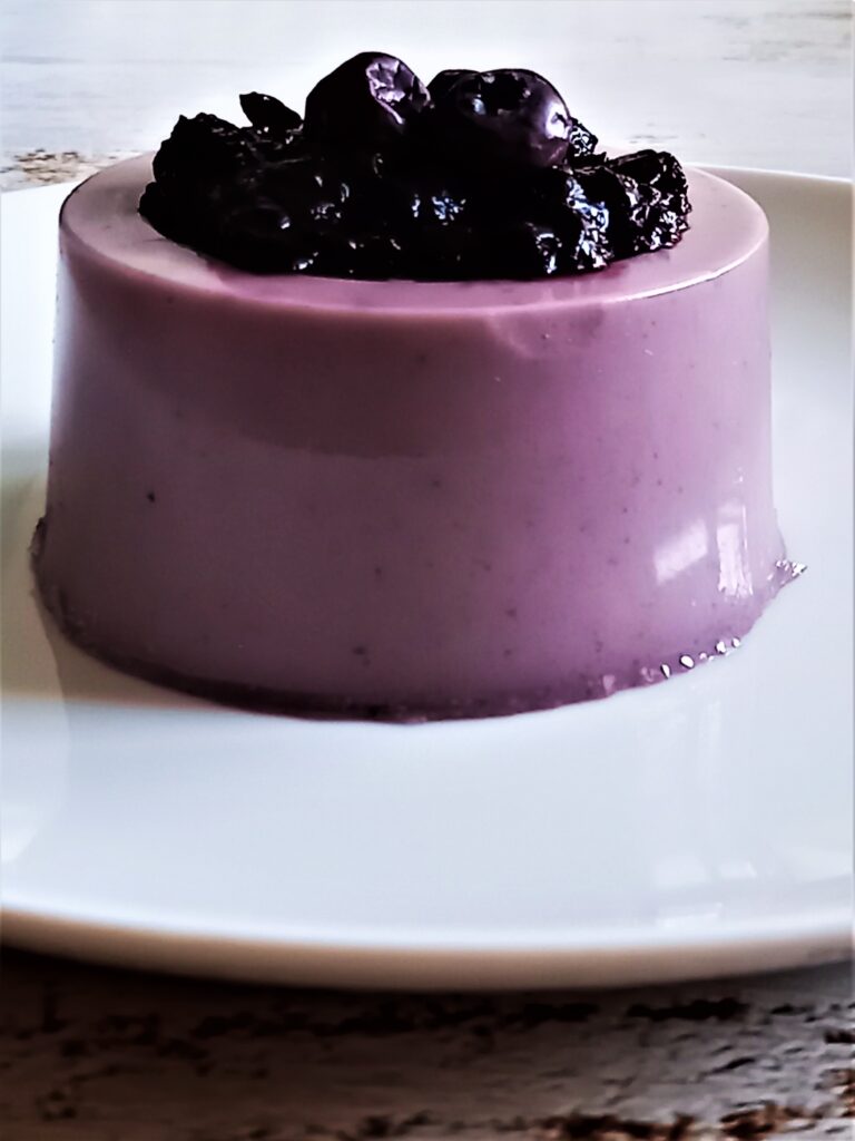 Borówkowa panna cotta z dodatkiem creme de cassis oraz domową konfiturą z jagód i korzennych przypraw to godny deser na zakończenie dobrego posiłku. Lekki, a zarazem bogaty, nasycony smakiem leśnych owoców podbitych jeszcze nutą świetnego likieru. W sezonie udało mi się zamrozić nieco dorodnych borówek, więc teraz z tego korzystam. Panna cottę dekoruję samodzielnie przygotowaną konfiturą, ale można podać ją bez tego dodatku, choć ja nie rezygnowałbym z tego. Jeśłi przepadasz za tym włoskim deserem, koniecznie wypróbuj poniższą wersję.