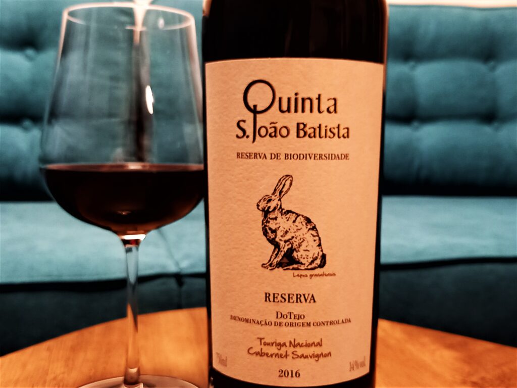 Jak wspomniałem, w samym Tejo znajdziemy ogromną ilość przeciętnych, aczkolwiek przyzwoitych win, które bardzo dobrze sprawdzają się w roli tych codziennych. Nie brak też poważniejszych etykiet stąd pochodzących, które starają się wybić ponad resztę. W dość łagodnym klimacie Tejo uprawiane są takie odmiany jak np. fernao pires, arinto, trincadeira das pratas, vital, chardonnay, sauvignon blanc, castelao, trincadeira, aragonez, touriga nacional, cabernet sauvignon, merlot, by wymienić tylko kilka z nich. Dziś otwieram wino właśnie z Tejo, a jest nim Quinta São João Batista Reserva Tinto Tejo 2016.