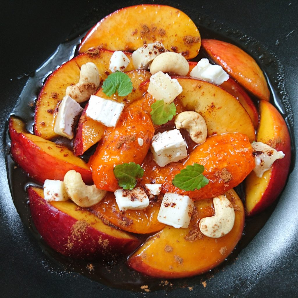 Karmelizowane brzoskwinie i morele z kozim serem