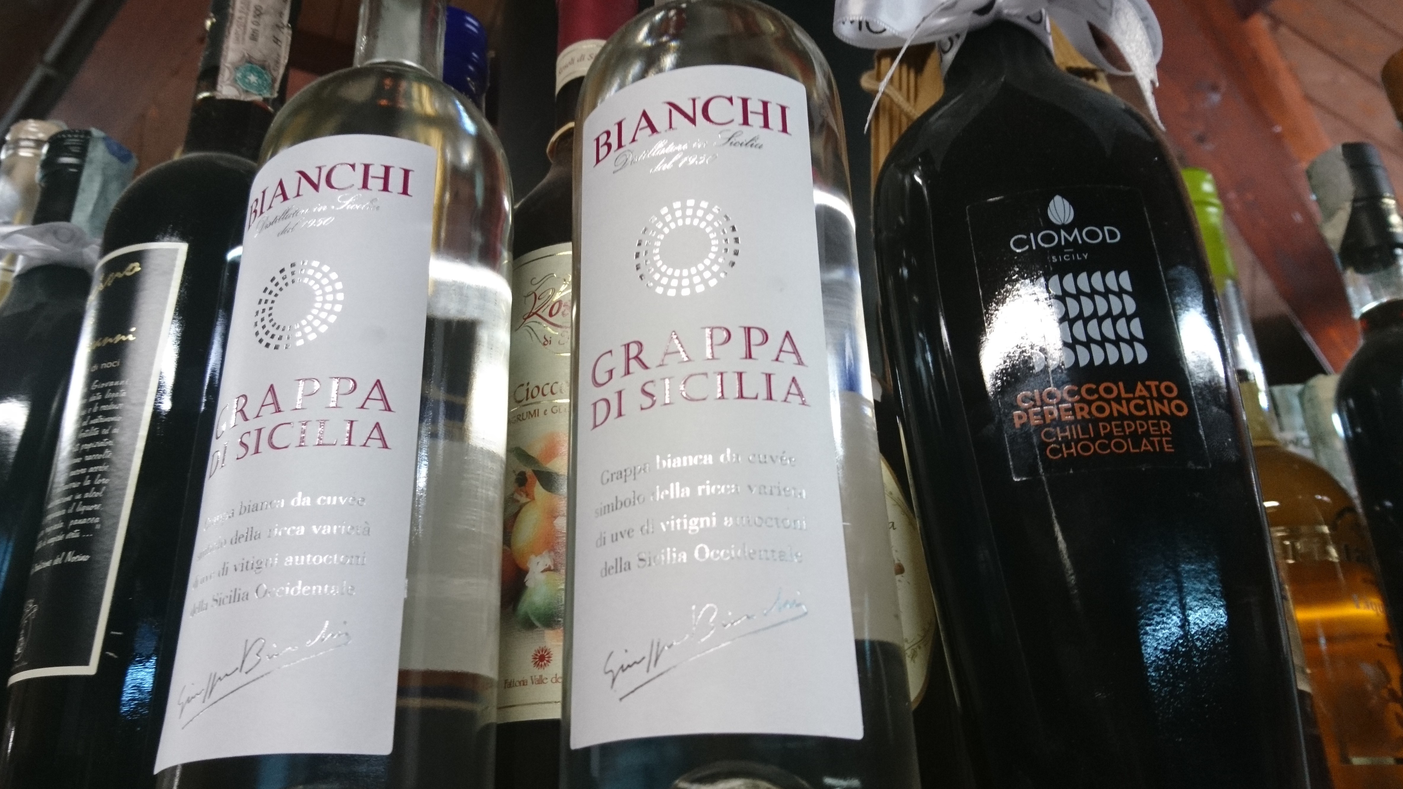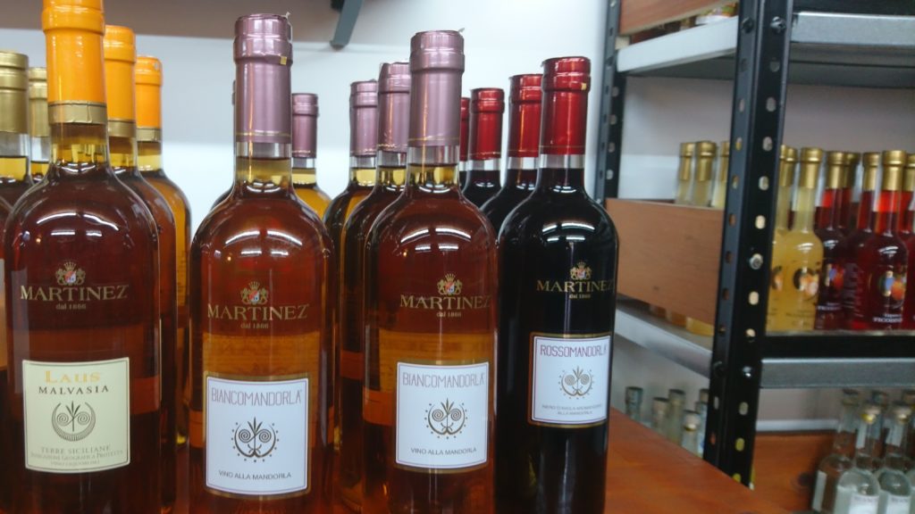 Na bazie migdałów produkuje się także Vino alla Mandorla – deserowe wino o smaku migdałowym. Jest to wino stołowe, wzmocnione alkoholem z esencją migdałową, czasem też z dodatkiem innych ziół. Występuje w wersji białej oraz czerwonej. Mnie bardziej do gustu przypadła wersja czerwona o bardziej subtelnym aromacie migdałów. Nadaje się w sam raz na deser. Poza tym znajdziemy na Sycylii również inne rozmaite likiery i mocniejsze alkohole: Limoncello, likier z karobu, Fuoco dell’Etna ( 70% trunek o charakterystycznej czerwonej barwie, którego skład pozostaje tajemnicą ).