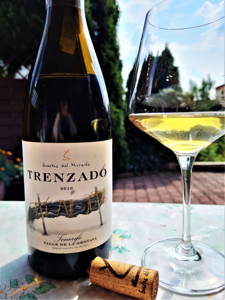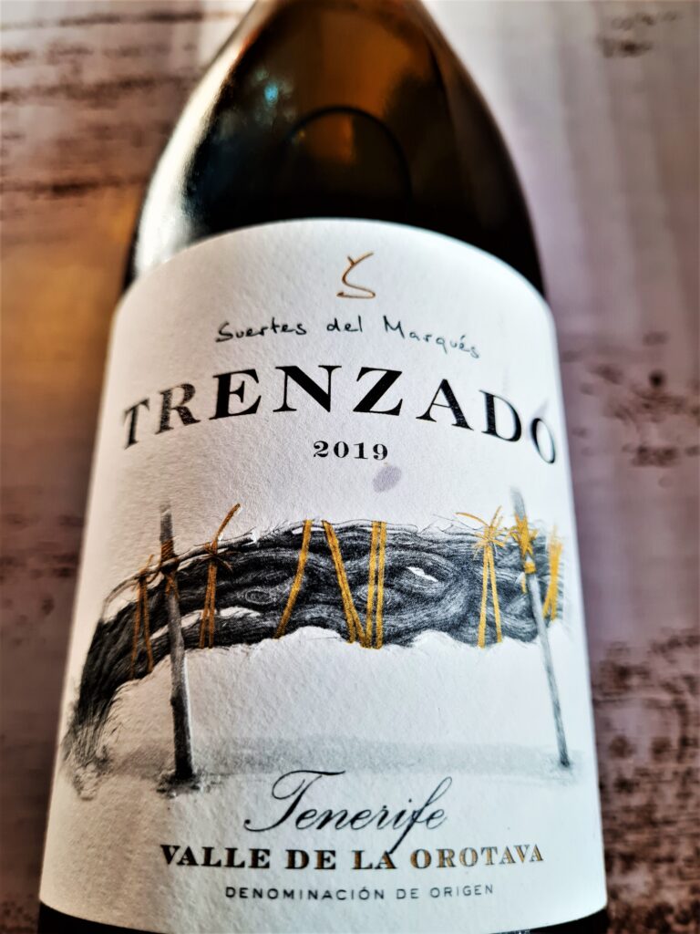 To biel skomponowana głównie z odmiany listan blanco z dodatkiem innych miejscowych winogron jak torrontes volcanico, albillo criollo, gual, marmajuelo, malvasia. Na etykiecie mojej butelki widnieją jedynie dwa szczepy: listan blanco i torrontes volcanico, więc być może w zależności od rocznika, dodawane są inne odmiany. Grona pochodzą z apelacji Valle de la Orotava z różnych winnic, których wiek wynosi od 10 do nawet 150 lat. Winorośle prowadzi się tu tradycyjnym systemem zwanym cordón trenzado, od którego wino wzięło swoją nazwę. Trenzado to podstawowa biel z portfolio Suertes del Marqués. Wino fermentuje z udziałem dzikich drożdży, a fermentacja następuje w drewnianych foudres o pojemności 20-45 hl. Dojrzewanie również następuje w tych samych beczkach foudres i trwa 9 miesięcy. W kieliszku czuć wulkaniczny charakter, nutę siarki, dymu, ale też przejrzałe białe owoce, niedojrzałego ananasa, trochę cytrusów, maślane akcenty, lekką redukcję. Na podniebieniu całkiem krągłe, o średniej kwasowości, wyraziste i z długim finiszem. Bardzo oryginalna butelka.