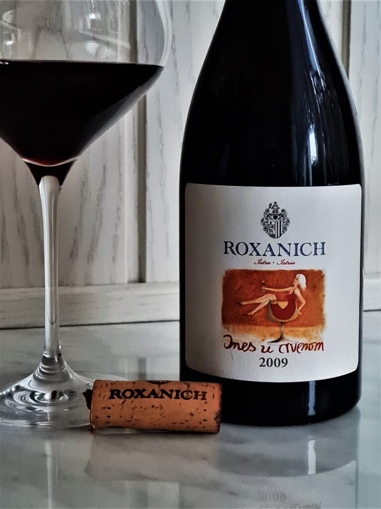 Kolejnym winem od Roxanicha, po które sięgam, jest przywiezione z Istrii Roxanich Ines u Crvenom 2009. I choć niedawno etykiety winiarni przeszły pewien lifting, a niektóre z dotychczasowych zniknęły z portfolio, to ich starsze roczniki wciąż trzymają się świetnie. Tak jest choćby z tytułową pozycją.