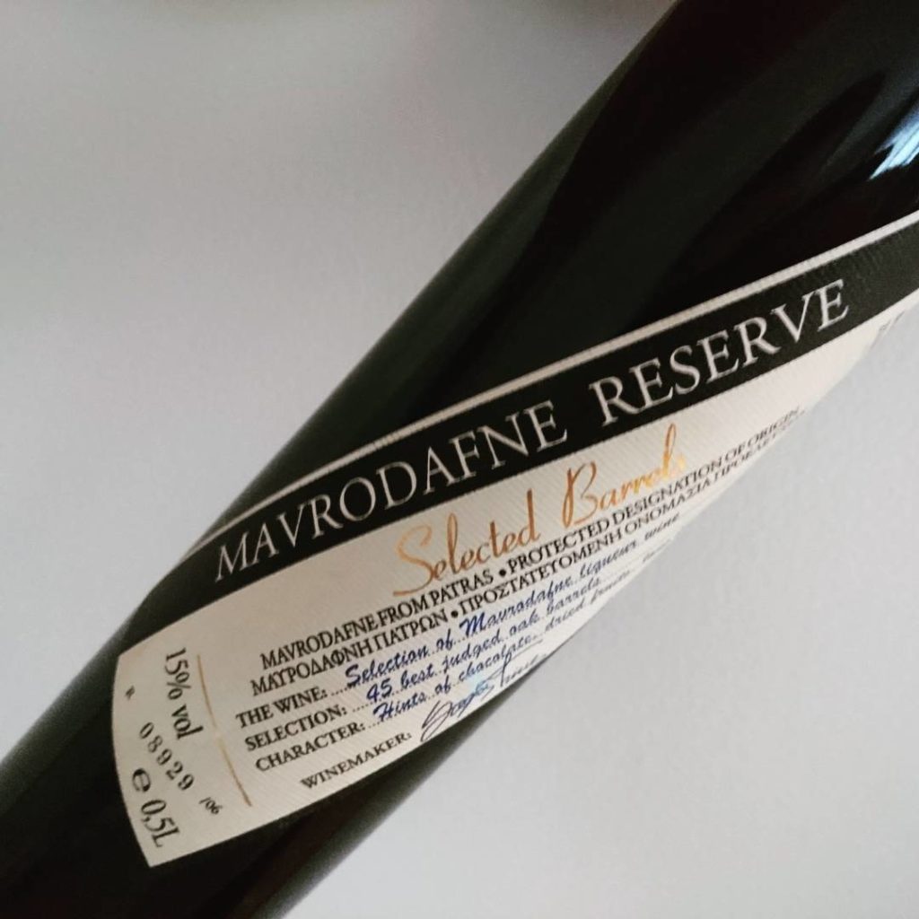 Mavrodaphne, czyli czarny laur lub czarny wawrzyn – tak właśnie tłumaczy się nazwę tego szczepu. Mavrodaphne to odmiana winorośli i zazwyczaj słodkie wino, specjalność apelacji Patras na północy Peloponezu. Starzone w beczkach, skoncentrowane, wzmacniane wino w stylu przypominającym Porto czy Recioto. Mavrodaphne spotykane jest w wielu miejscach Grecji choćby np. na Kefalonii, gdzie powstają równie doskonałe deserowe wina z tego właśnie szczepu, przypominające te z Patras. Kefalonię odwiedziłem jakiś czas temu, o czym pisałem na blogu, próbowałem też słodkiego, wzmacnianego Mavrodaphne tam wytwarzanego, a teraz pojawiła się okazja, aby skosztować tego wina w wydaniu z Patras.
