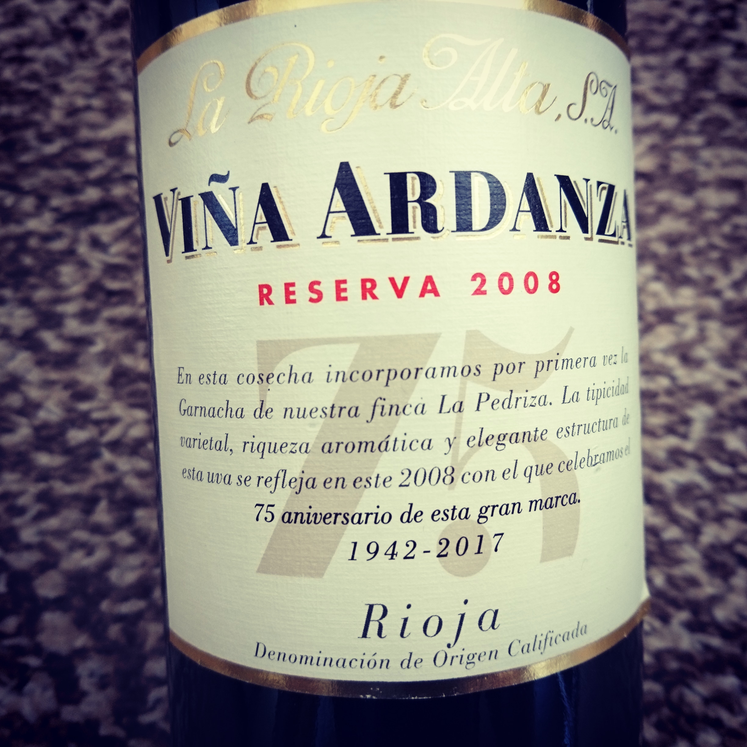 Wracając do dzisiejszego wina, Vina Ardanza (nazwa wina pochodzi od jednego z założycieli La Rioja Alta ) powstaje tylko w najlepszych latach. Rocznik 2008 charakteryzował się wysoką jakością winogron i umiarkowaną ilościowo produkcją. Vina Ardanza to kupaż 80% Tempranillo ze sporym 20% dodatkiem Garnachy. Grona Tempranillo pochodzą z 30- letnich winnic La Cuesta i Montecillo zlokalizowanych w Fuenmayor i Cenicero ( Rioja Alta ). Z kolei Garnacha swoje źródło ma w winnicy La Pedriza położonej w Tudelilla w Rioja Baja. Grona są zbierane ręcznie. Wino dojrzewa w beczkach z dębu amerykańskiego: Tempranillo oddzielnie przez 36 miesięcy i Garnacha również oddzielnie przez 30 miesięcy. Rocznik 2008 został zabutelkowany w 2013 roku.