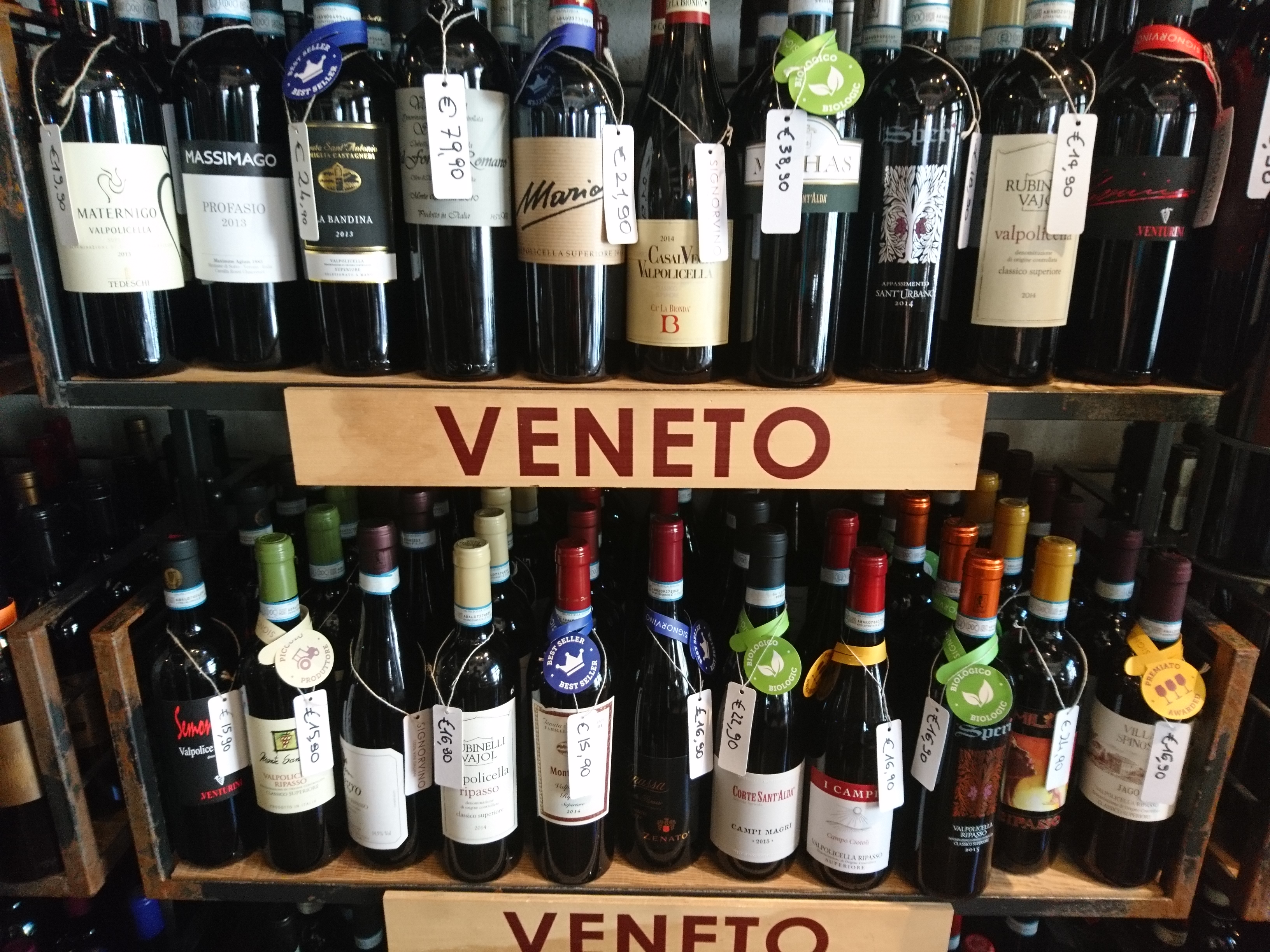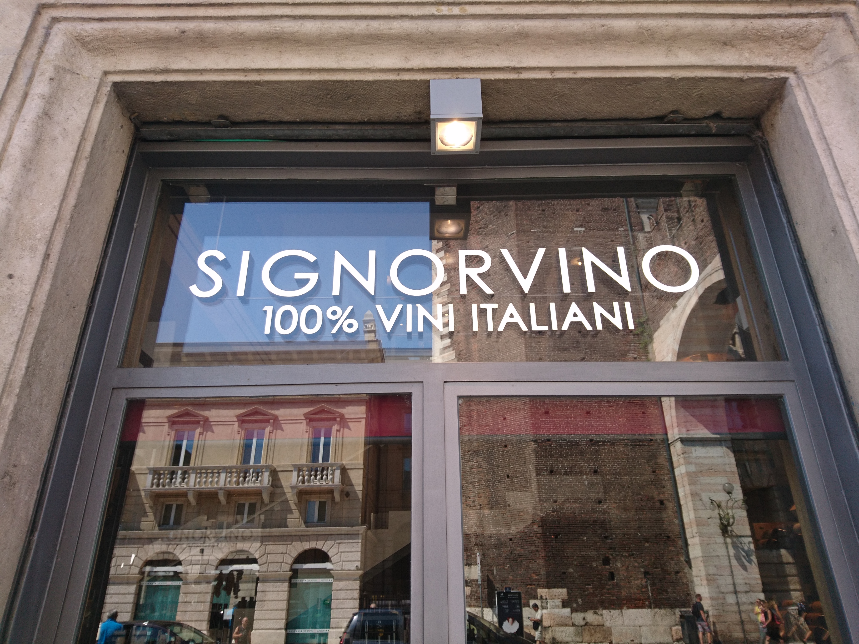 Signorvino w Weronie znajduje się przy Via Corso Porta Nuova 2, tuż przy Piazza Bra i Arenie. Był to pierwszy sklep, który odwiedziłem, gdyż 500 metrów dalej znajdował się mój hotel. Tutejsze Signorvino to nie tylko świetnie zaopatrzony sklep, ale też wine bar, gdzie można zjeść coś całkiem niezłego i napić się kieliszek wina. Wnętrze urządzone jest całkiem nowocześnie, a wina poukładane według regionów, z których pochodzą. Mnie oczywiście najbardziej interesowały wina z regionu, w którym aktualnie przebywałem, ale wybrałem również coś ciekawego z Friuli oraz z Trentino.