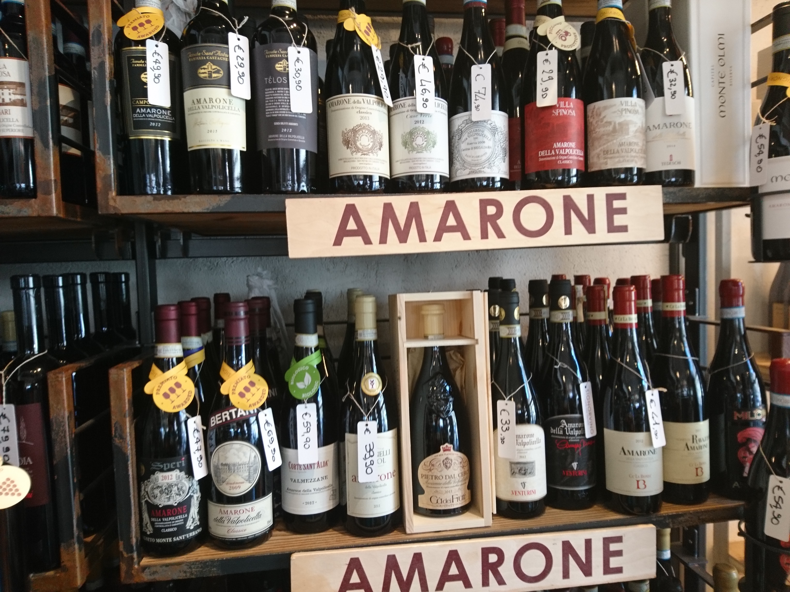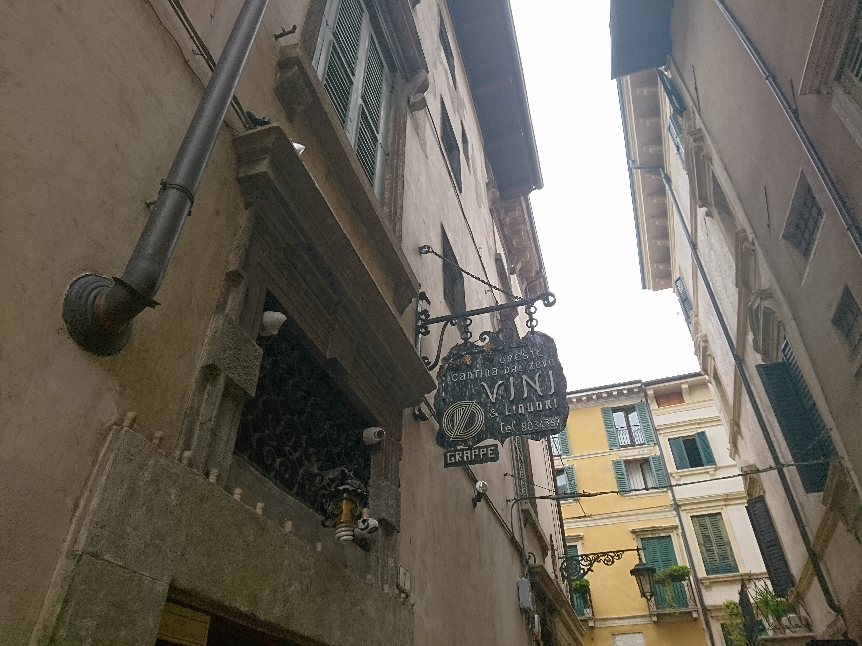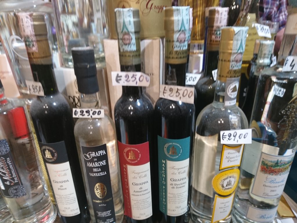 Trochę trudniej tu trafić, ale jeśli ktoś bardzo chce to bez problemu znajdzie drogę. Enoteca została założona w 1958 roku i jest trochę przeciwieństwem Signorvino. Tam mamy nowoczesność, podążanie za nowszymi trendami, natomiast Enoteca Dal Zovo Oreste to miejsce z tradycją, które chyba niewiele zmieniło się od chwili swojego powstania. I bardzo dobrze. Właściciel również ten sam już sile wieku, ale znający się na rzeczy, gdyż jest akredytowanym sommelierem. Ciepło wita gości, choć komunikacja z Panem Oreste jest trochę utrudniona, ponieważ włada jedynie językiem włoskim ( a przynajmniej tak mi się wydaje, bo po angielsku dogadać się nie udało ). Ale w końcu wino zbliża do siebie ludzi i bariera językowa znika. Właściciel od razu zaproponował degustację dwóch Amarone, z czego oczywiście skorzystałem. Selekcja win w Enotece Oreste jest naprawdę imponująca. Wysokie aż po sam sufit regały pełne są włoskich etykiet, także tych kultowych i bardzo drogich. Do tego wybór win z innych krajów oraz istne królestwo grappy i różnych mocnych alkoholi jak koniak, armaniak, brandy, likiery itp. Znaleźć też tu można bardzo dobre octy balsamiczne i oliwy. Prawdziwe miejsce z duszą. Zakupy również zrobione.