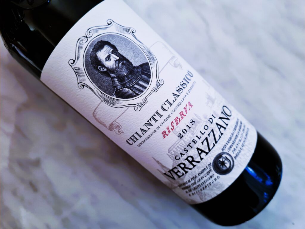 Castello di Verrazzano Chianti Classico Riserva 2018 to również 95% sangiovese plus inne czerwone odmiany ( co do zasady canaiolo ). Ręczny zbiór, 24 miesiące dojrzewana w dębowych beczkach ( 20 hl ). Dojrzałe czerwone owoce, śliwka, tytoń, czarny pieprz, drewno, trochę słodkiego dymu, konfitura. Jest też leśna ściółka, mokra ziemia, ciemne kwiaty, wyraźniejsza struktura i tanina, a całość całkiem poważna i ambitna. Godna uwagi butelka.