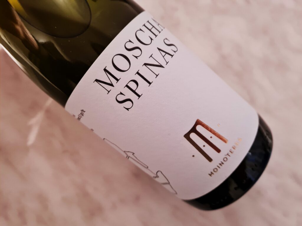 Moinoterra Moschato Spinas 2022 to wino powstałe w 100% z moschato spinas – endemicznej odmiany muscatu, którą spotkać możemy tylko na Krecie, a sam miałem okazję próbować już kilku win z tego szczepu. Grona pochodzą z dwóch działek w Archanes ( 470 i 600 m n.p.m. ), a krzewy liczą sobie średnio 10 lat. 12 godzin maceracji na skórkach, 4 miesiące dojrzewania w stali na osadzie. Wino częstuje nas aromatyczną wonią cytrusów, pomarańczy, dojrzałą brzoskwinią, kwiatem jaśminu, zapachem śródziemnomorskiej roślinności, melonem, owocem egzotycznym. Mnóstwo świeżości, umiarkowana kwasowość, wino niezwykle pijalne, kuszące, ale i ambitne jednocześnie, sprawiające dużo przyjemności. Trudno przejść obok niego obojętnie.