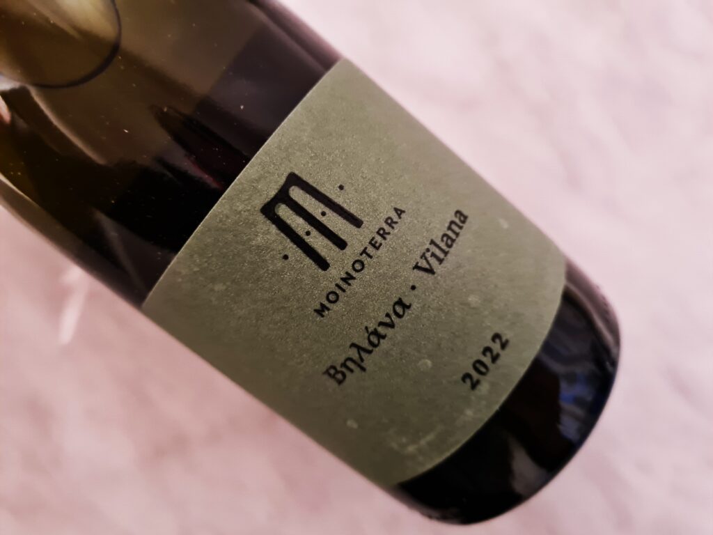 Moinoterra Vilana 2022 to czysta vilana z pojedynczej winnicy położonej u stóp góry Giouchta. Ponad 20-letnie krzewy rosną na wysokości 500 m n.p.m. 8 miesięcy dojrzewania w stalowej kadzi na osadzie z zastosowaniem batonnage. Wino jest pełne, bogate, z solidną strukturą, kremowe, z cytrynowym kremem, mineralnym oddechem, dojrzałą gruszką, owocem egzotycznym, szczyptą ziół. Oryginalne, poważne, fascynujące i gastronomiczne wino.