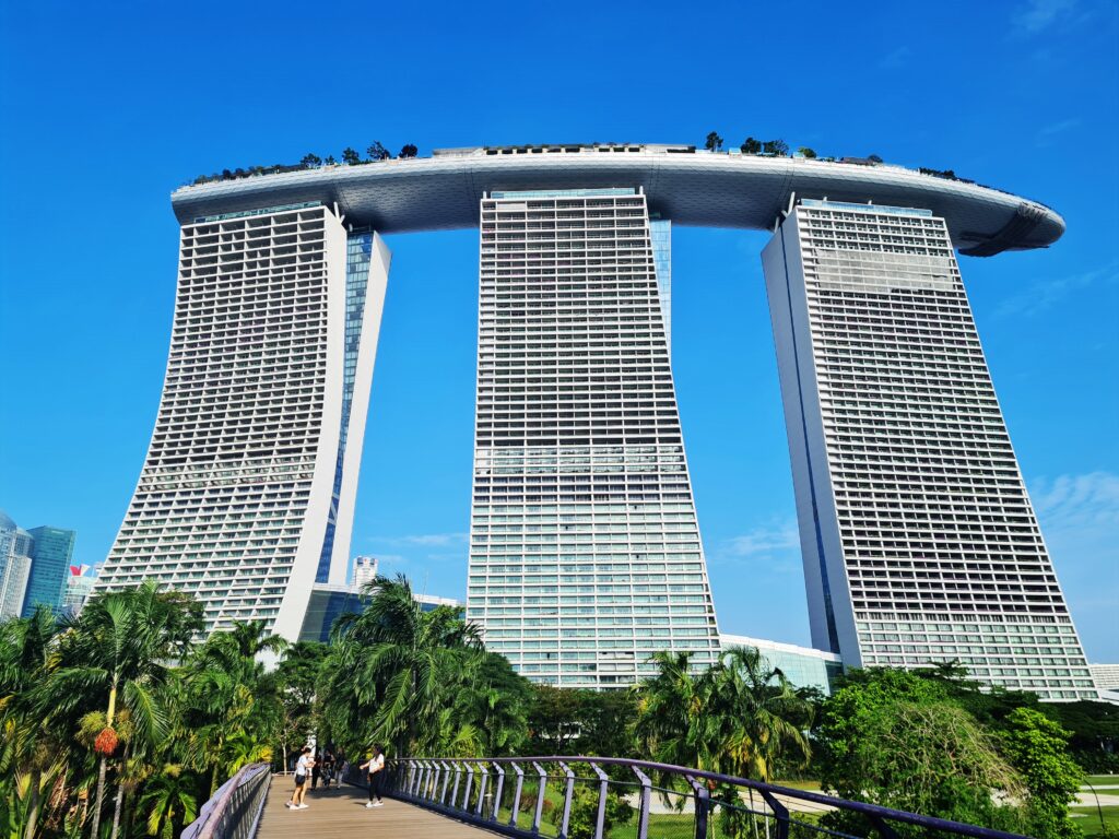 Gdy masz ograniczony czas pobytu w Singapurze i chcesz zobaczyć jedynie najważniejsze jego atrakcje, to wspomnianych ogrodów nie możesz pominąć. Singapur to bardzo zielone miasto z licznymi parkami w jego centrum, ale palma pierwszeństwa bez dwóch zdań należy się Gardens By The Bay, które to ogrody stanowią dość duży kompleks ( trzy części Bay South, Bay East i Bay Central ) i jeśli ktoś ma zamiar zwiedzić je całe, to musi zarezerwować sobie nieco więcej czasu. Największe atrakcje czekają w części Bay South i to tu w pierwszej kolejności każdy powinien się udać. Chyba wszyscy kojarzą sylwetki tzw. Supertrees, które dominują nad całą resztą ogrodów i stanowią to, co przyciąga tutaj odwiedzających. Tak na marginesie, tuż obok Gardens By The Bay znajduje się słynny Marina Bay Sands – kolejne obowiązkowe miejsce na mapie Singapuru, więc udając się do samych ogrodów, możemy również od razu odwiedzić ten hotelowo-rozrywkowy kompleks ( warto przede wszystkim wjechać na punkt widokowy SkyPark Observation Deck ). Dziś jednak będzie o samych ogrodach.