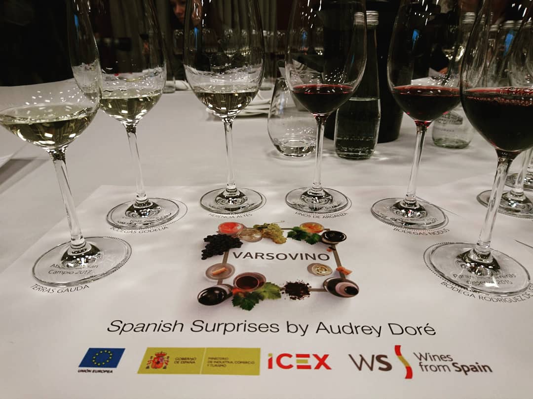 Podczas Varsovino 2018 odbyły się również dwie komentowane degustacje: Spanish Surprises, którą poprowadziła Audrey Dore – sommelierka z prestiżowej restauracji El Celler de Can Roca oraz druga degustacja: Rueda – cała na biało pod przewodnictwem Julio Cesar Sobrino – znanego ambasadora hiszpańskich win w Polsce. Ja udział wziąłem w pierwszej z nich i miałem okazję spróbować 6 etykiet zrobionych z endemicznych hiszpańskich odmian. Degustowałem następujące wina: