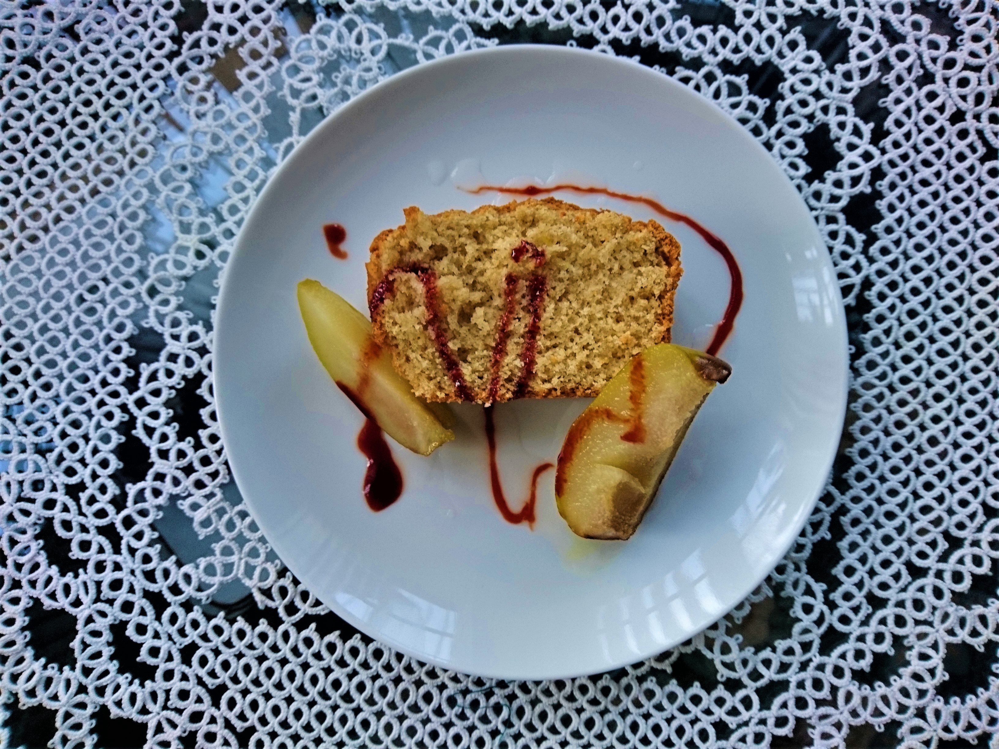 Do ciasta używam mąki owsianej, ale jeśli chcesz możesz upiec je z mąki pszennej lub z obu rodzajów mąk. Dzięki dodatkowi oliwy i wina ciasto jest wilgotne, miękkie i posiada delikatny, słodko-owocowy posmak za sprawą słodkiego wina. Całość idealnie uzupełniają pieczone gruszki – również w Sauternes. Prawdziwy deser z winem w roli głównej.