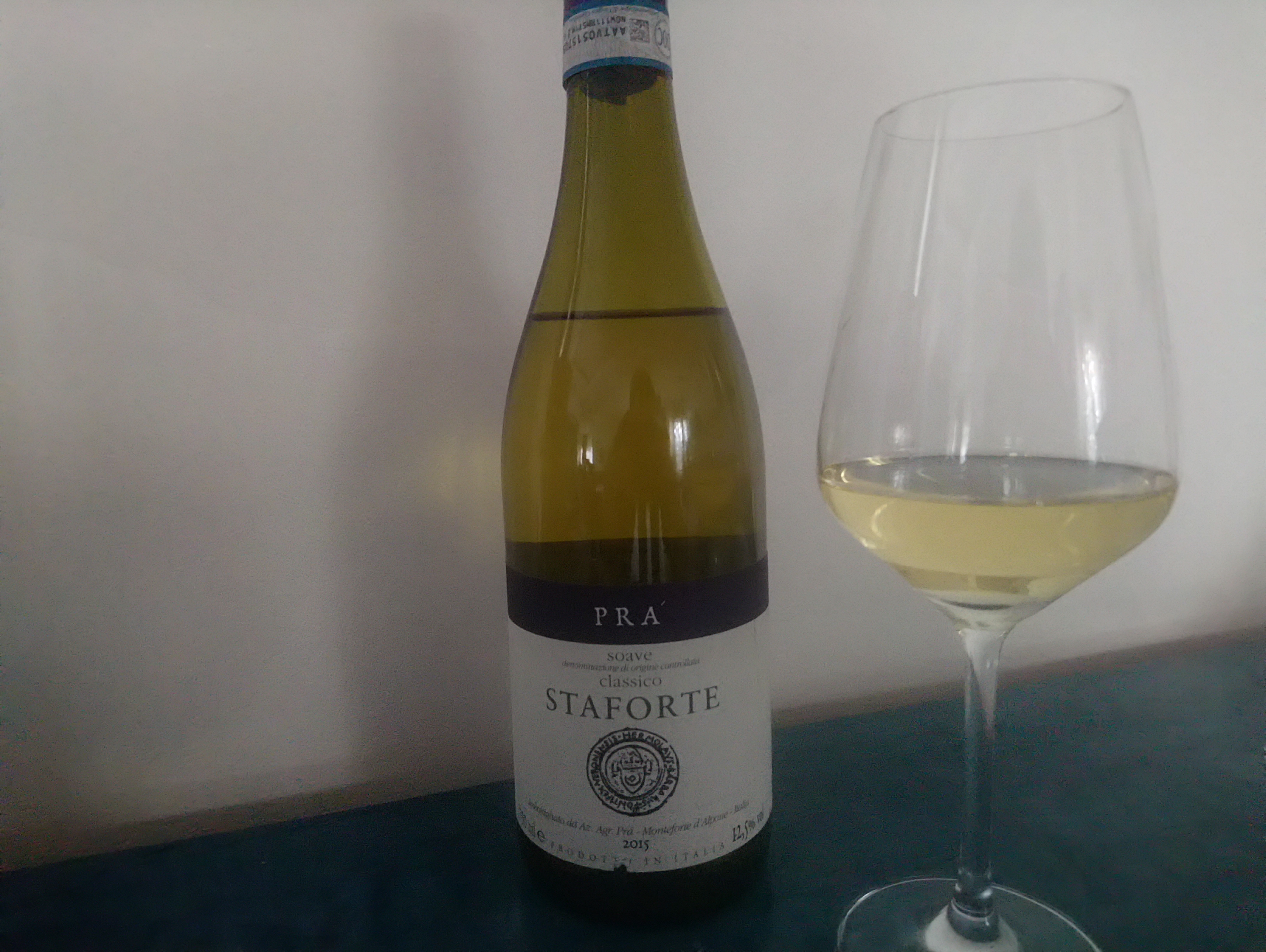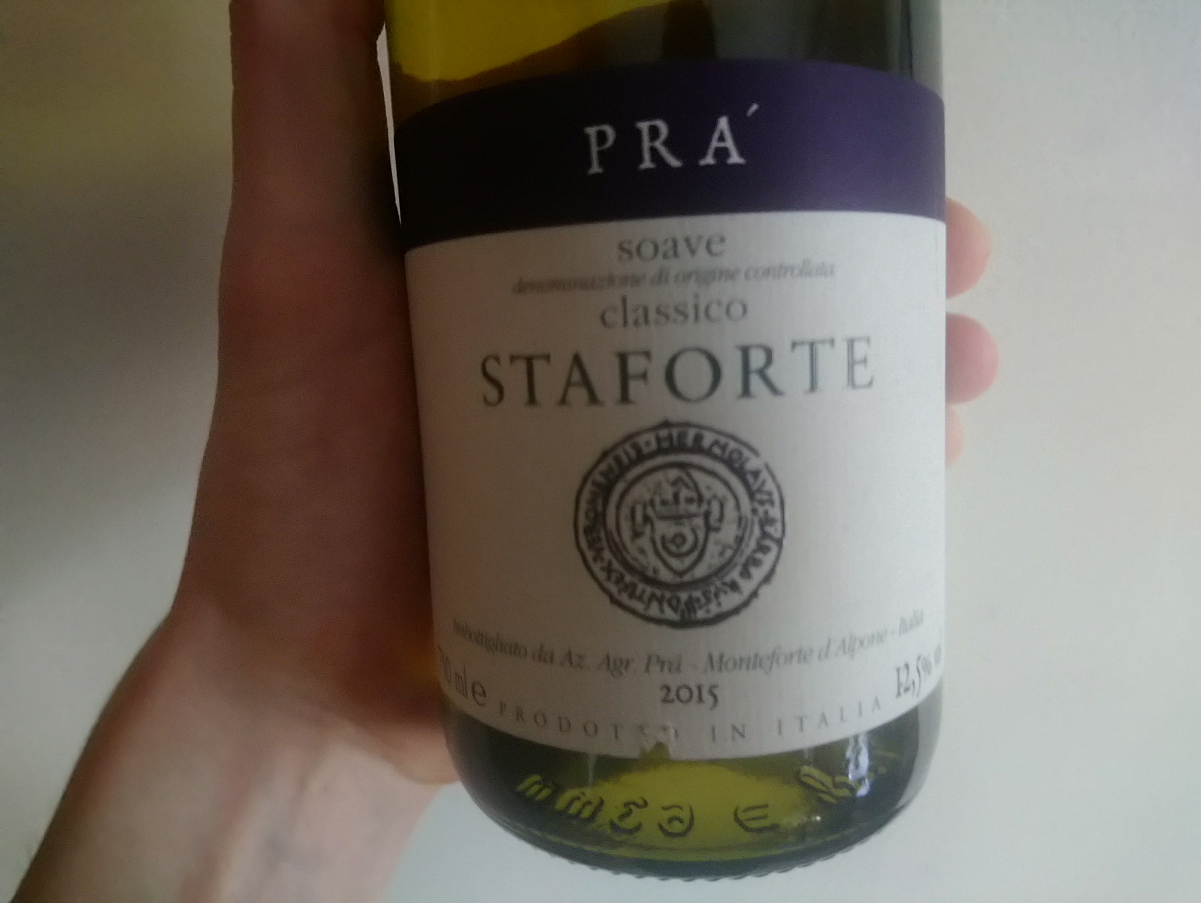 Jednym z Soave, jakie przyjechało ze mną z podróży jest etykieta od Pra – cenionego producenta apelacji. To Soave Classico Staforte 2015.