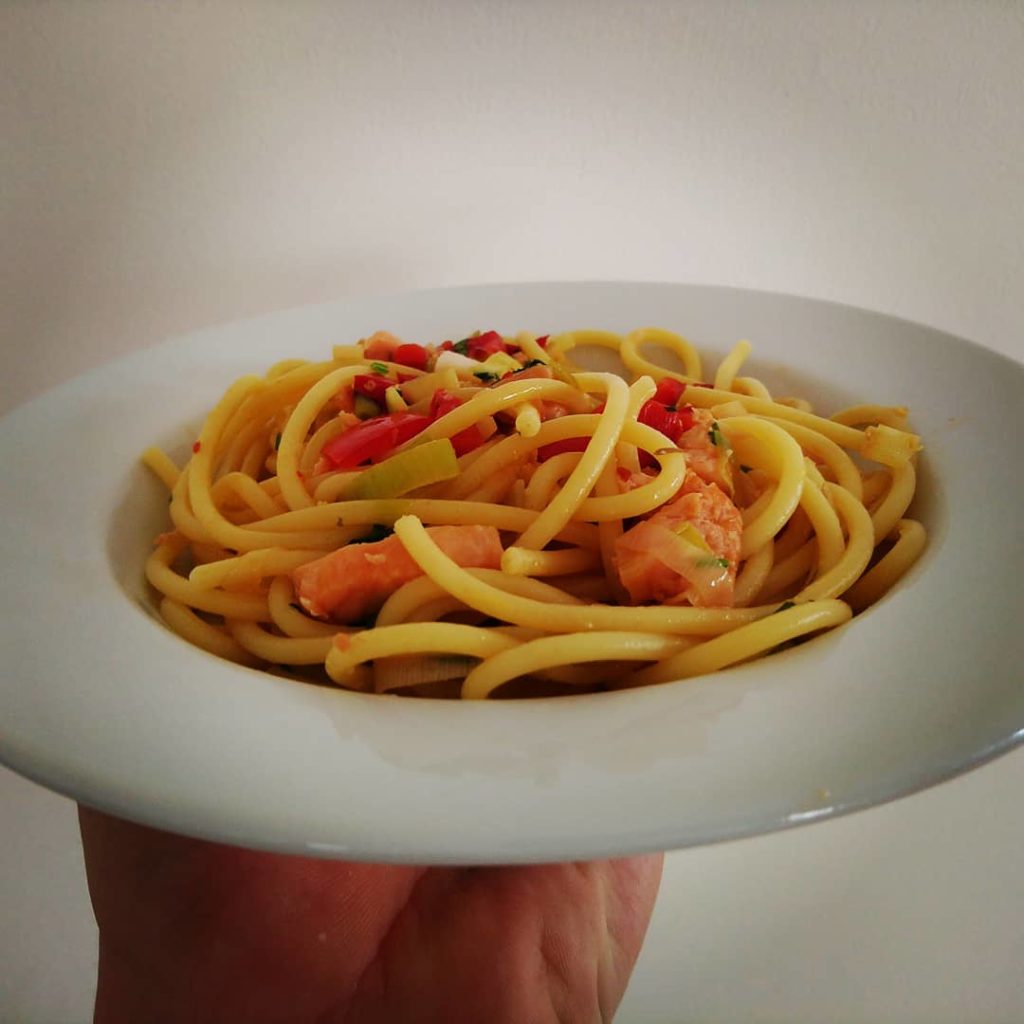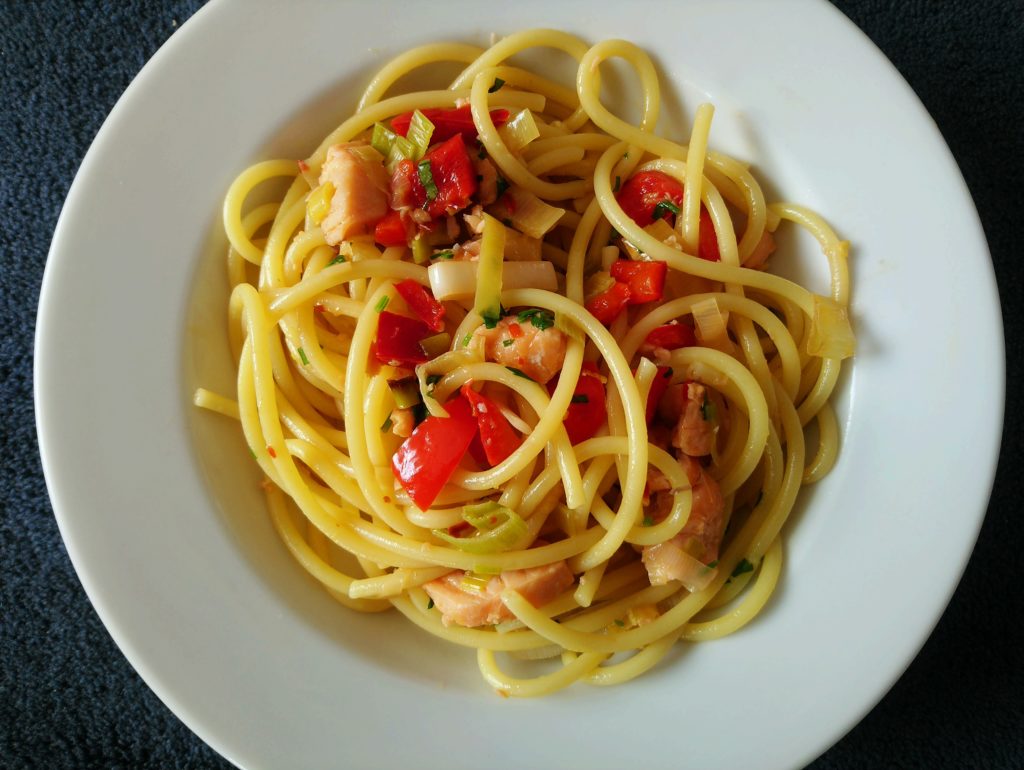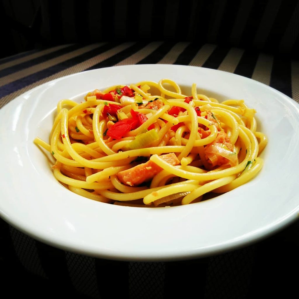 Linguine Avellinesi jest jednym z przykładów lekkiej, a powiedziałbym nawet orzeźwiającej pasty. Połączenie wędzonego łososia, papryki, chili, pora, cytryny daje wyśmienity rezultat. Tylko kilka prostych składników, ale zapewniam, że każdy wielbiciel makaronu będzie w pełni usatysfakcjonowany. Jest to danie w sam raz na letni lunch czy kolację, a poza tym ma ono jeszcze jedną zaletę – przygotowuje się je dosłownie w parę minut. Przepis pochodzi z książki „Włoskie dania makaronowe” Gino D’Acampo.