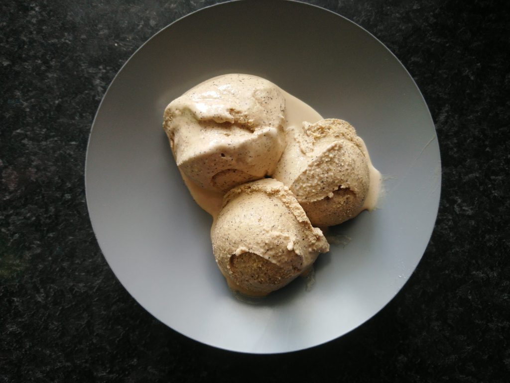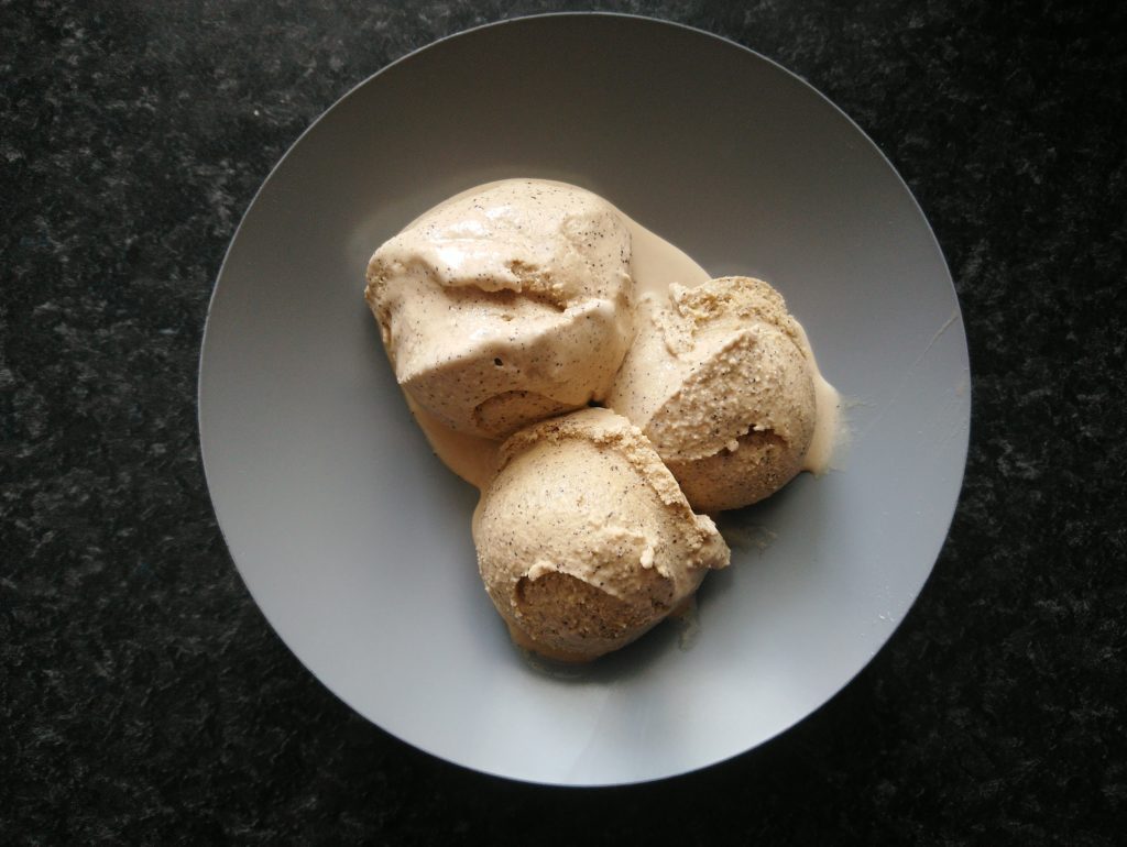 Masę przełożyć do maszynki do lodów i wyrabiać lody około 40 minut. W razie potrzeby, po wyrobieniu przełożyć do pojemnika i umieścić w zamrażarce na około 2 godziny.