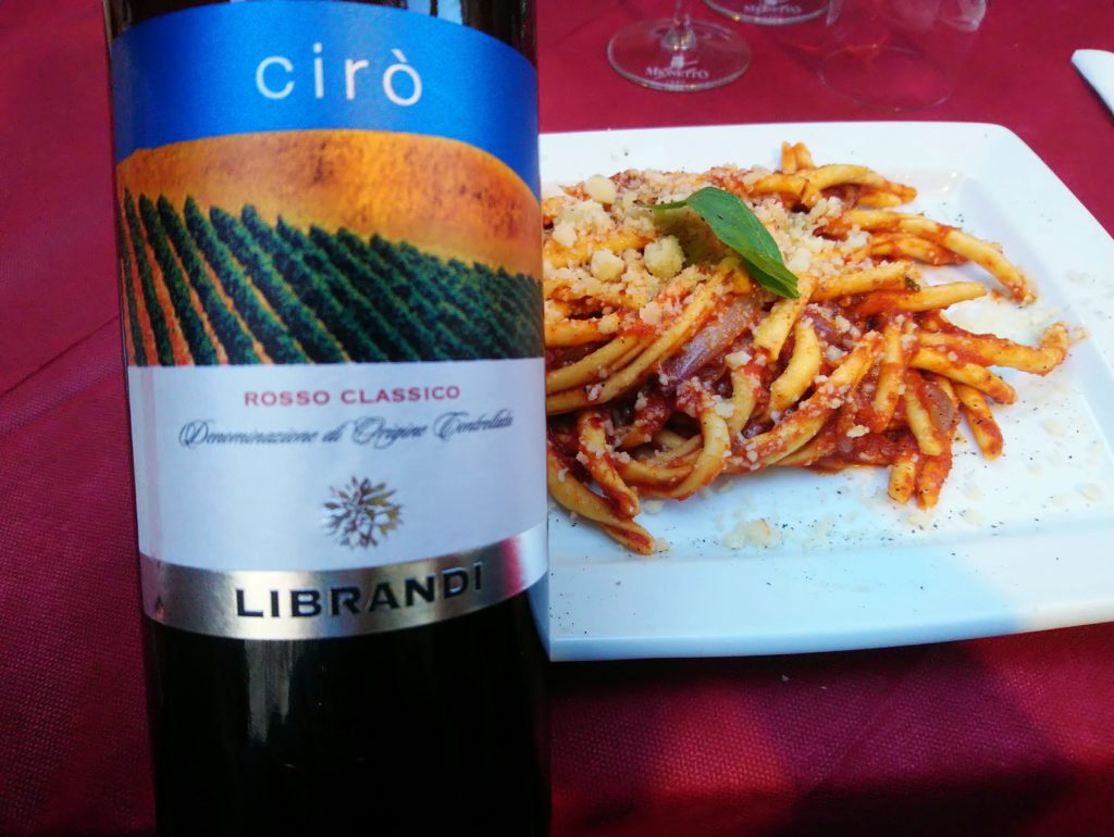 Filej e nduja zamówiłem po przylocie do Kalabrii razem z butelką prostego Ciro i wszystko ładnie do siebie pasowało. Bardziej lokalnie już być nie może. Do takiej pasty sprawdzi się też np. Frappatto, wytrawne Lambrusco, prostsze Nero d’Avola, ale też dobre, lokalne rose.