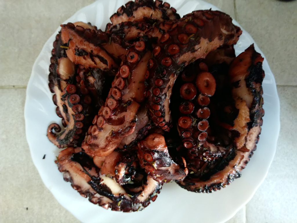 Ośmiornica wyszła fenomenalna – grubiutkie, jędrne macki nasyciły kilka osób, gdyż przygotowałem dorodne dwie sztuki. Mówię wam, świeższych nie znajdziecie. Na noc umieściłem je w zamrażarce, aby zmiękczyć ich włókna, a następnego dnia wyborny obiad był gotowy.