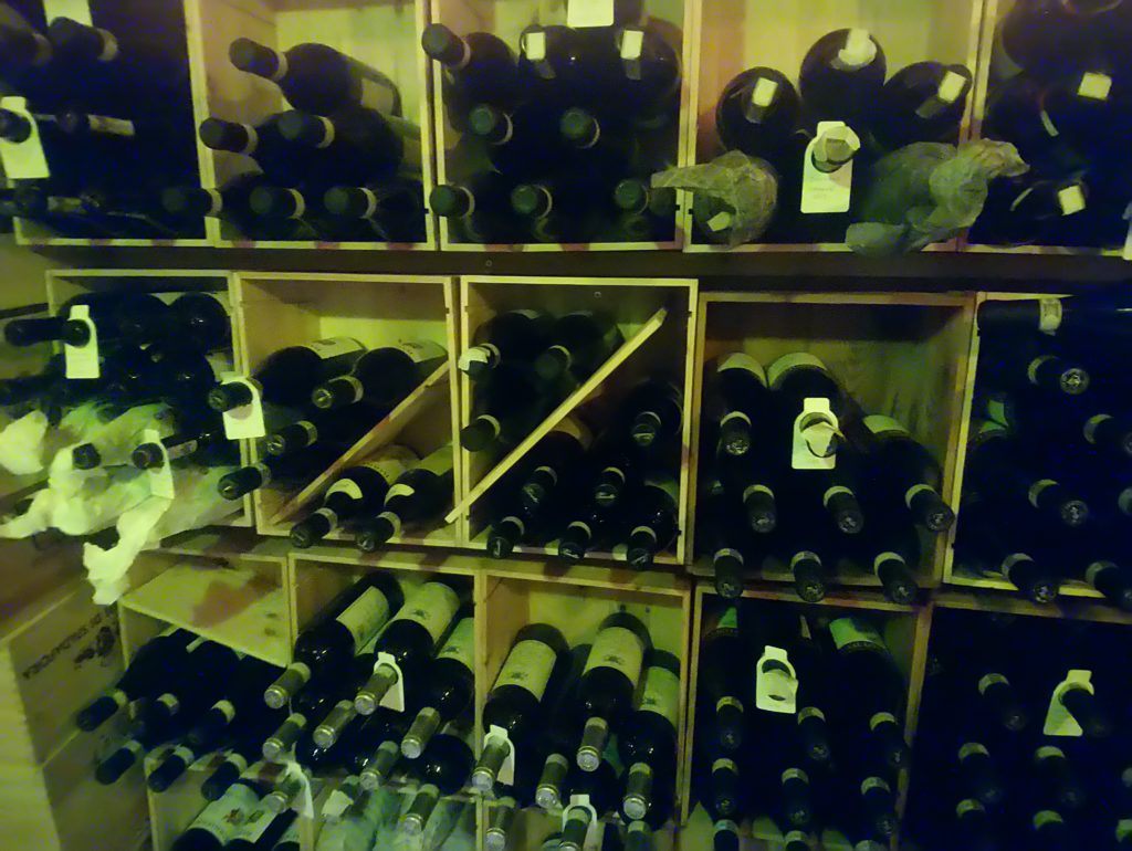Koniecznie trzeba też wspomnieć o tutejszej, wspaniałej kolekcji win, w której znajdziemy ponad 500 etykiet. Nie brakuje również selekcji mocniejszych alkoholi. Całością opiekuje się sommelier Yiannis Xanthakis, z którym miałem przyjemność zejść do piwnicy i porozmawiać kilka chwil. Yiannis przywitał mnie kieliszkiem Franciacorty i oprowadził po swoim podziemnym królestwie, co było dla mnie wspaniałym doświadczeniem. Po raz kolejny okazało się, że świat jest mały, bo Yiannis, gdy dowiedział się, że jestem z Polski, przyznał się, że spędził w naszym kraju jakiś czas podczas studiów na wymianie studenckiej. Odnalazł też w swojej kolekcji polską Żubrówkę.