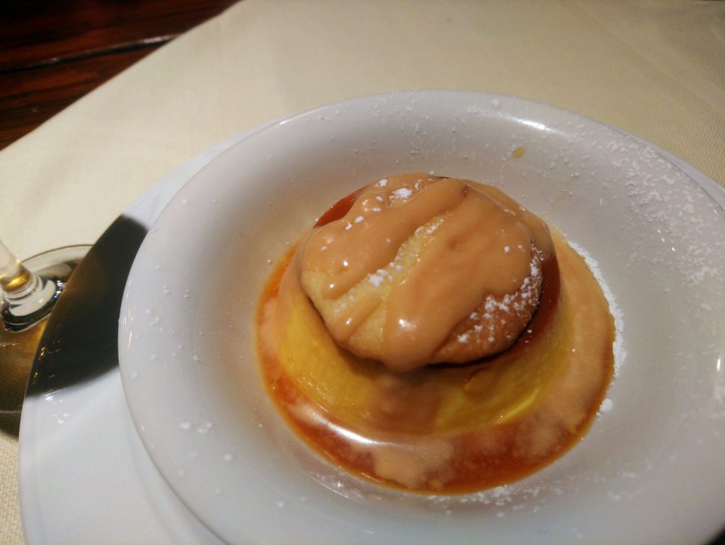 Chwilę potem na stół trafił jeszcze boloński pudding fior di latte z biszkoptem i kremem toffi. Do tego kieliszek czegoś, co samo w sobie stanowi obłędny deser – Ben Rye od Donnafugaty. Lepiej zakończyć posiłku nie można.