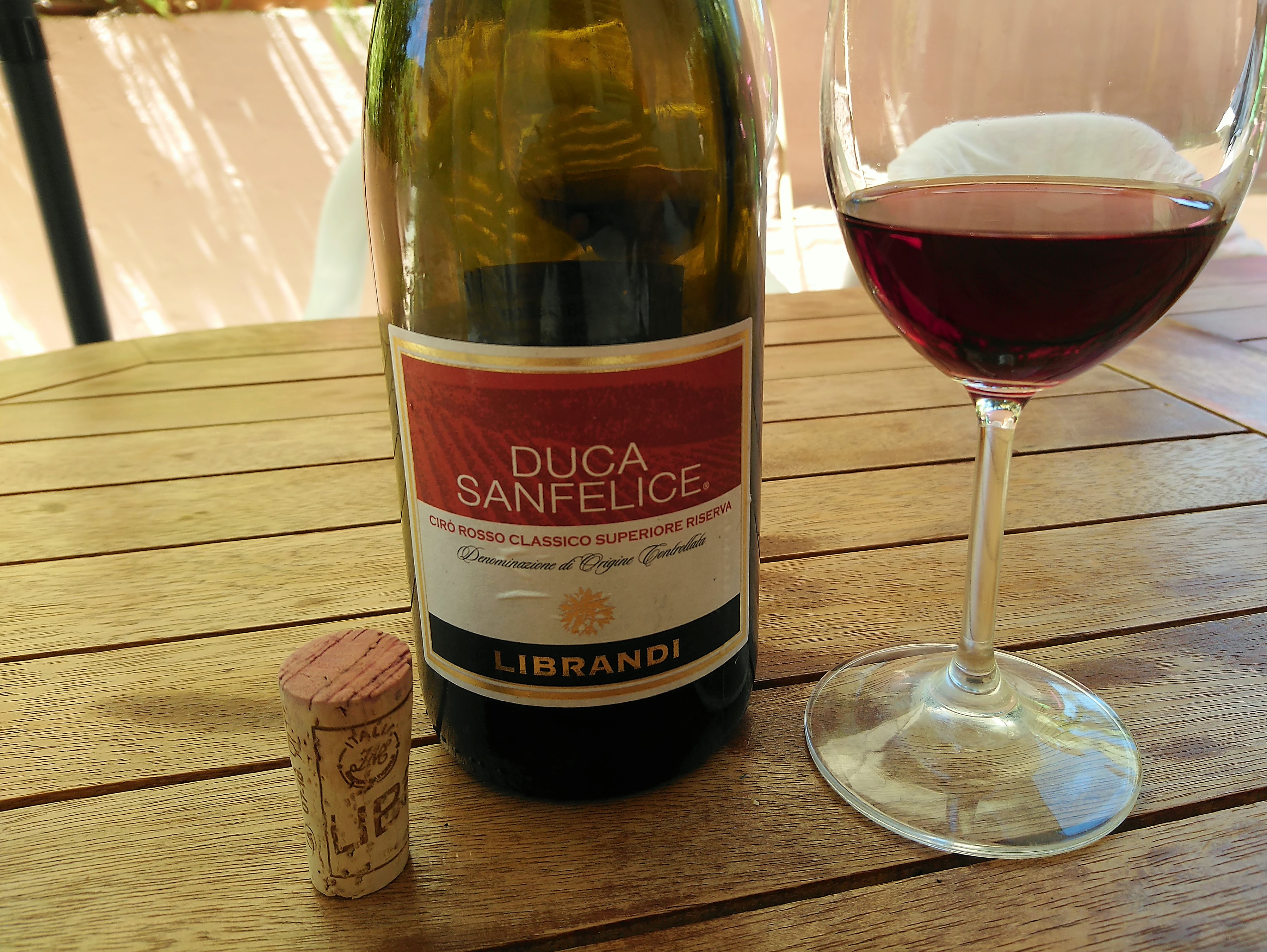 Jedną z etykiet, która z pewnością zasługuje na uwagę jest Duca Sanfelice Ciro Rosso Classico Superiore Riserva 2014 od Librandi – chyba najjaśniejszej gwiazdy tutejszego winiarstwa. To najsłynniejsza i mogąca pochwalić się największymi sukcesami winiarnia w Kalabrii. Nikt w regionie nie zrobił więcej dla apelacji Ciro niż właśnie Librandi, podobnie zresztą jak dla popularyzacji lokalnych odmian winorośli ( m.in. Magliocco ). Od czterech pokoleń wytwórca pracuje nad tym, aby Ciro i pozostałe wina Kalabrii zyskały większy, międzynarodowy rozgłos. I ten cel już osiągnął, gdyż wspomniana na początku etykieta, jak i jego Gravello ( blend Gaglioppo i Cabernet Sauvignon ) oraz Magno Megonio ( 100% Magliocco ) to wina, które nie tylko znalazły uznanie u wielu ekspertów, ale też wzbudziły większe ( choć uważam, że wciąż za małe ) zainteresowanie kalabryjskimi winami. Duca Sanfelice, a także Gravello i Magno Megonio to najlepsze wina wytwórcy, które regularnie w kolejnych rocznikach zdobywają wysokie noty. O Gravello i Magno Megonio napiszę więcej w przyszłości, gdyż te dwa wina przywiozłem ze sobą do kraju.