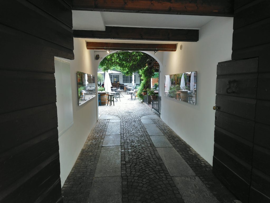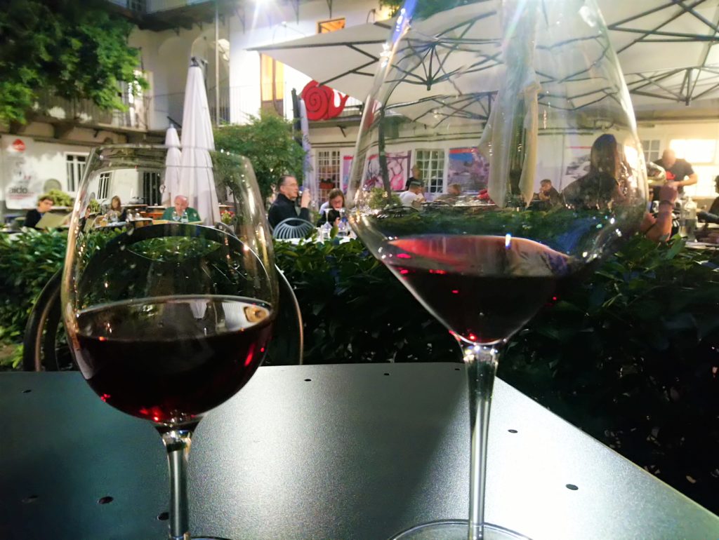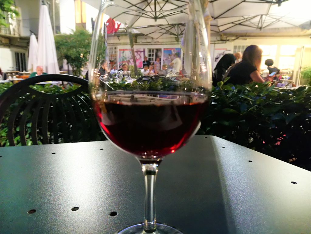 Nie muszę chyba dodawać, że lokal taki jak ten, cieszy się niemałą popularnością, a w czasie festiwalu o stolik tym bardziej nie jest łatwo. Dlatego wcześniej polecam go zarezerwować, jeśli chcemy być spokojniejsi o naszą kolację. Wybierać możemy spośród miejsc na przyjemnym, niewielkim dziedzińcu lub pośród stolików wewnątrz na pierwszym piętrze. W Osterii byłem dwa razy – raz jadłem na zewnątrz, drugi raz już w środku.