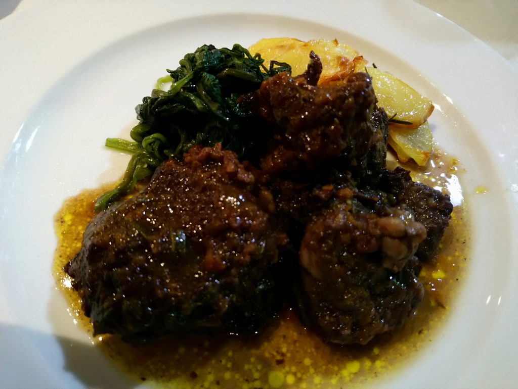 Policzek cielęcy został uduszony w nebbiolo do perfekcji – klasyka w najlepszym możliwym wydaniu. Prosto i niezwykle smacznie.